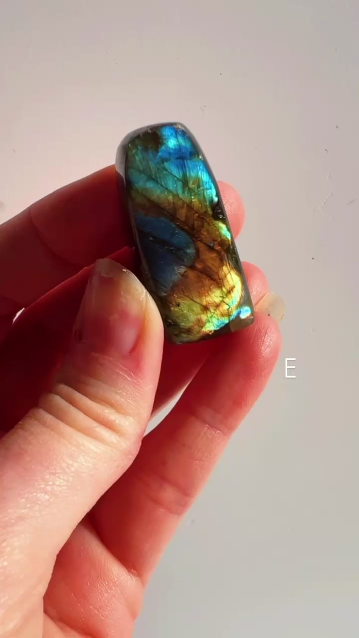 These stunning Labradorite freeforms showcase the captivating flashes of colour that make this stone so loved with vibrant tones of blue, gold, green and rainbow fire dancing across its surface when it catches the light.