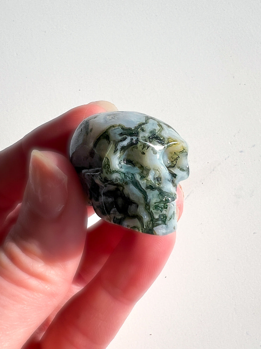 Connected with nature, growth and new beginnings. Moss Agate displays beautiful green inclusions that resemble moss within the stone.