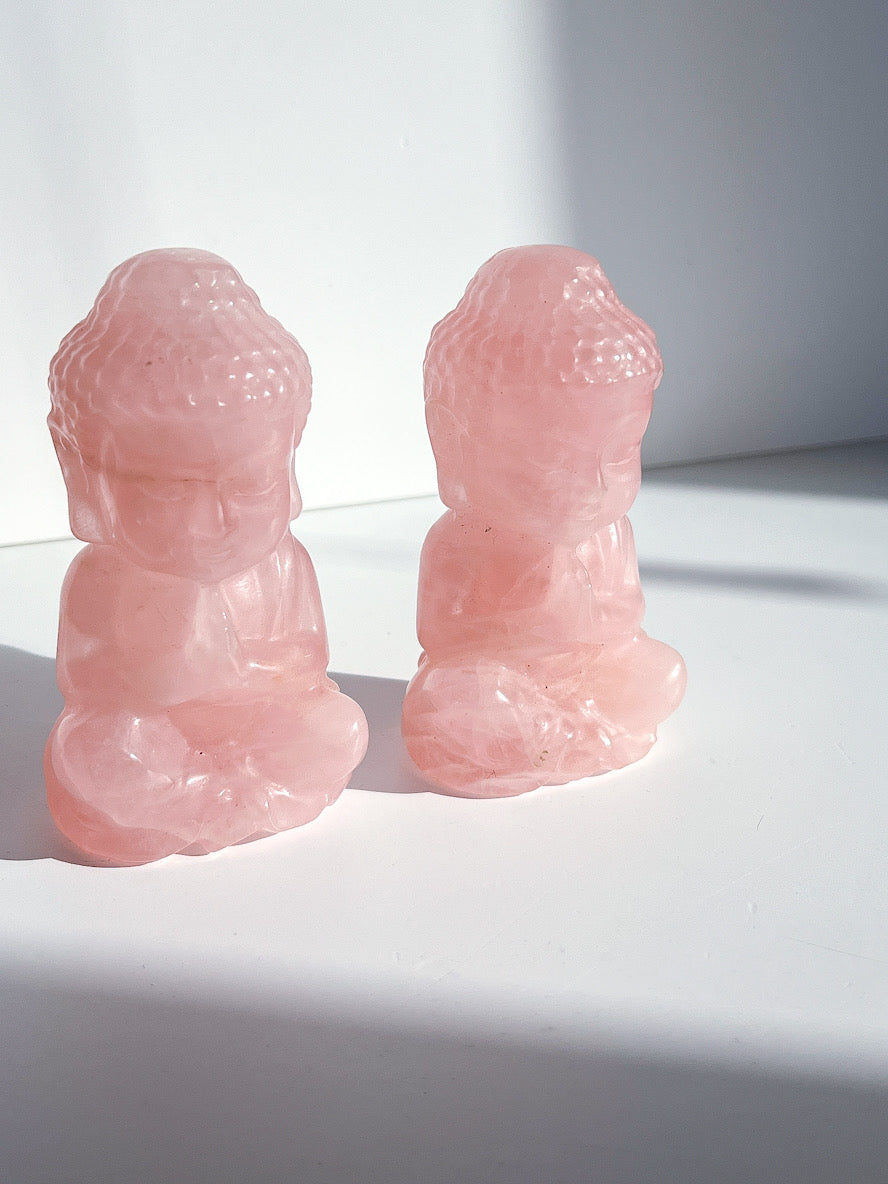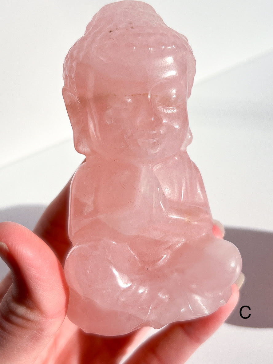 Rose Quartz Buddha Carving - D