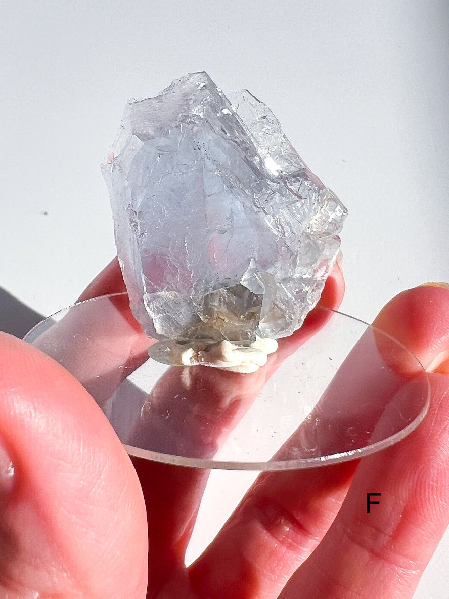 Each crystal displays gentle shades of soft sky blue, icy blue and pale lavender, with natural crystal faces that catch the light beautifully. Their raw formations highlight the natural geological structure of Fluorite, making them fascinating mineral pieces as well as calming crystals to display.