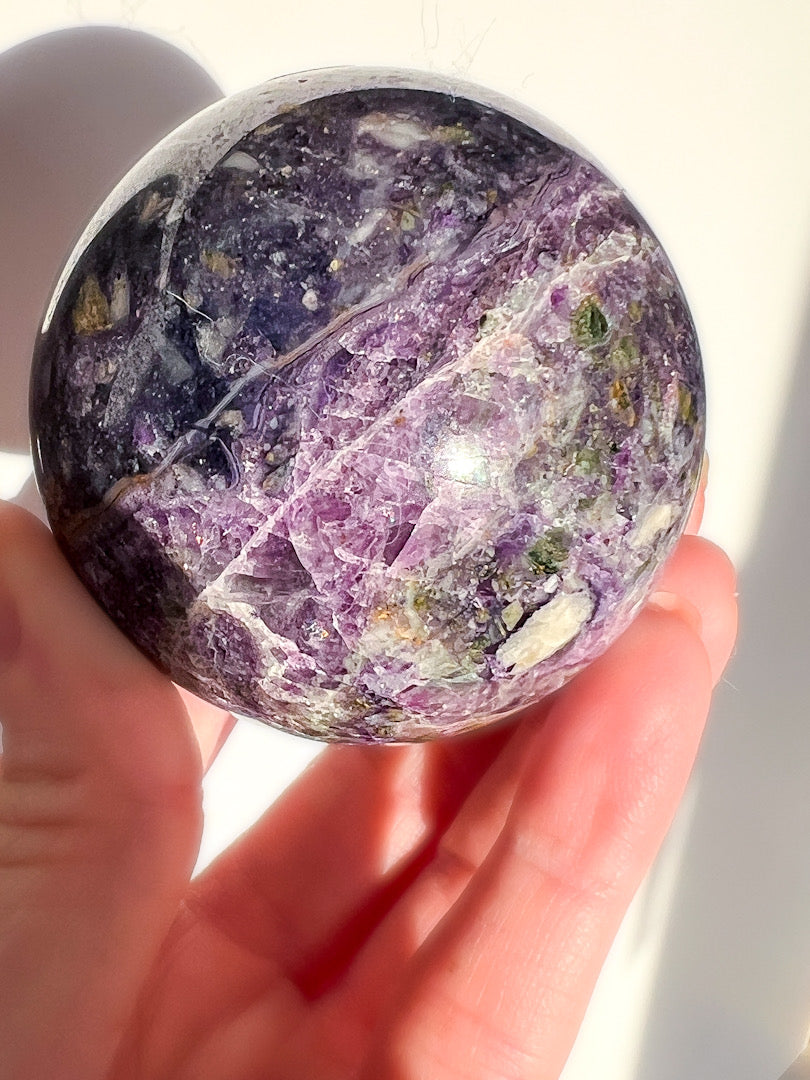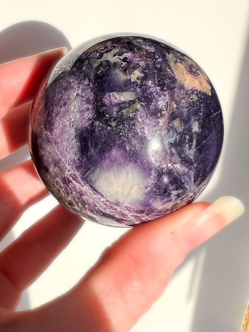 Place this sphere in your workspace to support focus and clear thinking, keep it nearby during journaling or reflection, or use it as a grounding visual anchor during meditation. Many people also choose to display it where they want balanced, steady energy throughout the day.