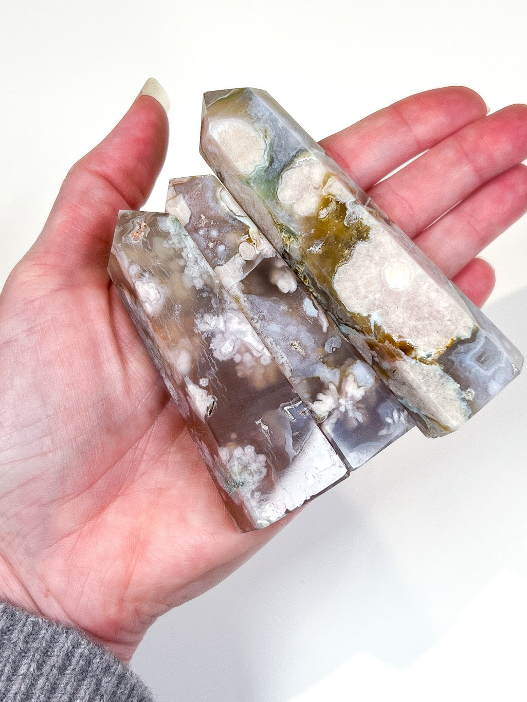 Each Flower Agate point features unique natural patterns and formations, giving every piece its own distinct character and visual depth.